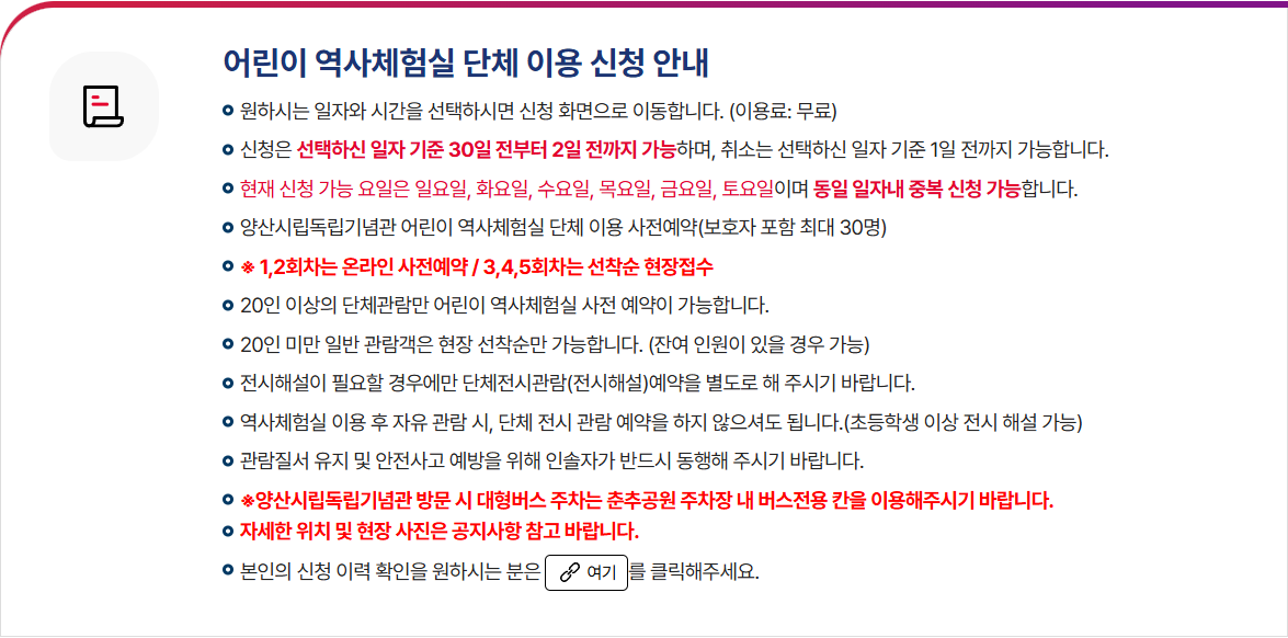 어린이 역사체험실 단체 이용 | 독립기념관 | 체험·견학 | 홈페이지