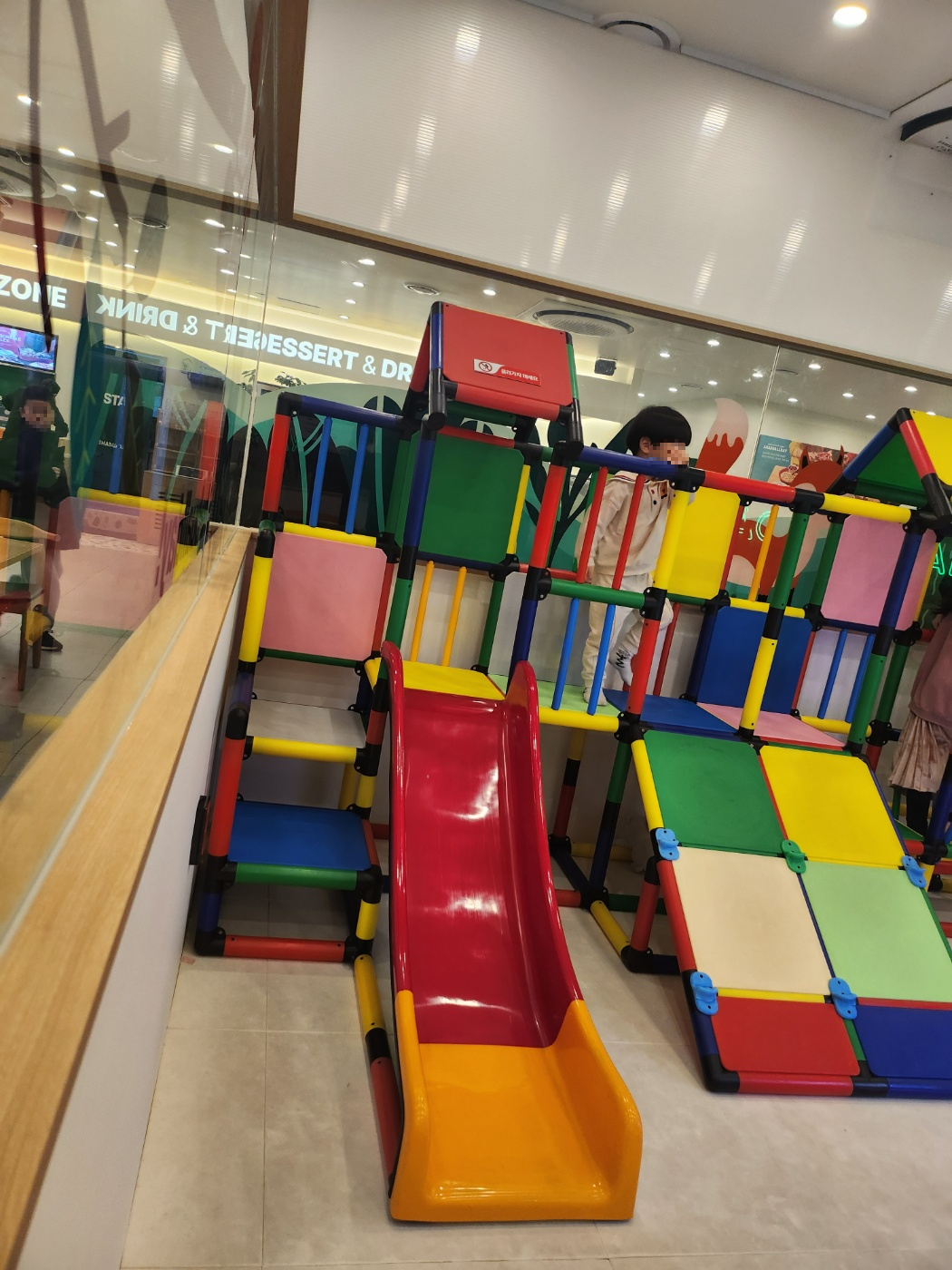 놀이방 바로 옆 테이블에 앉아서 눈으로 아이보기 좋았어요
