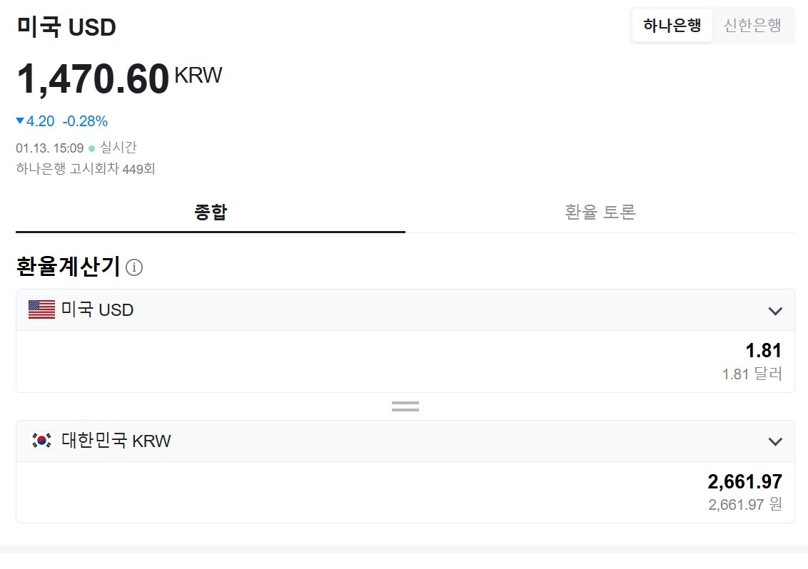환율계산하면 2025년 1월 13일 현재 2,661원이네요!
